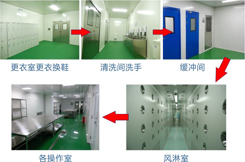 6、工作人員進入潔凈車間無菌室前,必須用肥皂或消毒液洗手消毒,然后在緩沖間更換專用工作服、鞋、帽子、口罩和手套(或用70%的乙醇再次擦拭雙手),方可進入潔凈車間無菌室進行操作。