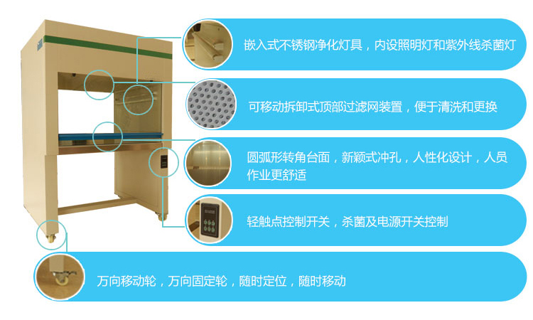 | 材質 | 箱體1.2mm軋鋼板烤漆,臺面SUS304 1.2mm厚度不銹鋼(可訂做全不銹鋼超凈臺) | ||||